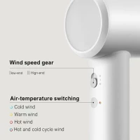 негативні іони. Вони знімають статичну електрику з волосся, роблячи його шовковистим і слухнянішим. Після використання Mijia H501 SE ваше волосся має вигляд, як після салону. У пристрої встановлений датчик контролю температури, який відстежує рівень тепла 100 разів на секунду. З таким пристосуванням доглядати за локонами одне задоволення.