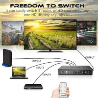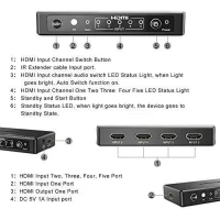 5-портовый коммутатор HDMI. 5 входов HDMI и 1 выход HDMI для различных устройств HDMI. Расширьте возможности своего телевизора высокой четкости, подключив до 5 HDMI-совместимых устройств для плавных переходов без внешнего питания.