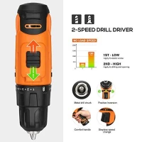 2-переменная скорость: 2-скоростные настройки (0-350/0-1300 об/мин) подходят для двух применений: низкая скорость для сборки мебели, высокая скорость для тяжелых работ, таких как сверление стен или металла. Идеально подходит для повседневного бурения и вождения.
