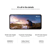 6.55-дюймовый AMOLED дисплей с поддержкой Dolby Vision обеспечивает превосходное изображение. Благодаря технологии TrueColor достигается высокая точность цветопередачи, а все цвета и оттенки на дисплее выглядят насыщенными и яркими. HDR10+ гарантирует потрясающую детализацию даже в самых ярких и темных сценах и точную передачу черного и белого цветов.