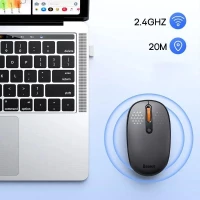 Беспроводная мышка Baseus, с тремя режимами работы, 2,4G, бесшумный щелчок – имеет эргономичный дизайн, обеспечивающий удобное держание в руке. 3 режима сопряжения, поэтому , легко переключайте устройства, поддерживающие 2,4 ГГц. Имеет автоматический спящий режим - активируется , если мышкой не пользоваться в течение 30 минут. Регулируемая чувствительность DPI выбирайте 800, 1000 или 1600 DPI для игр, рисования и т.д.