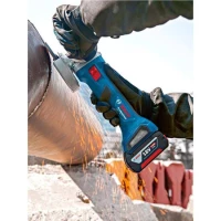 Аккумуляторная угловая шлифовальная машина Bosch Professional GWX 18V-7 идеально подойдет для резки, шлифовки и сверления. Количество оборотов 11000 об/мин (максимальные). Диаметр круга — 125 мм, крепится с помощью системы X-LOCK. Вес тушки (без аккумулятора) — 2.3 кг.