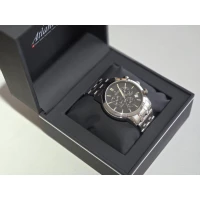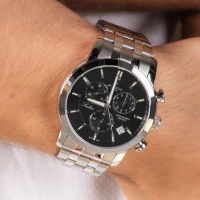 Стильный мужской хронограф из коллекции Sealine. Корпус диаметром 44-мм выполнен из полированной медицинской стали. Метки-деления и крупные стрелки с люминисцентным покрытием расположились на черном циферблате с рифленой каймой. Вспомогательные циферблаты хронографа и окошко даты дополняют дизайн модели. Завершает композицию крупный, браслет из полированной и матовой стали.