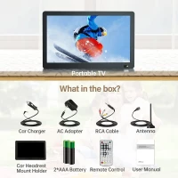 Full HD портативный телевизор: Небольшой 14-дюймовый широкоформатный телевизор со съемной антенной для цифрового ATSC для бесплатного просмотра ТВ. Разрешение экрана Full HD 1080P и встроенные двойные считыватели подарят вам больше аудиовизуальных удовольствий.
